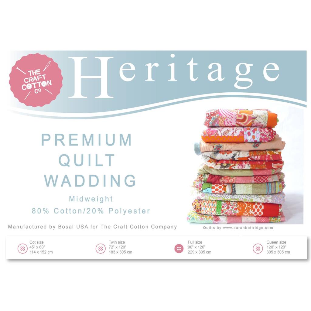 Premium mid-weight quilt wadding, manufactured by Bosal USA for the Craft Cotton Company.