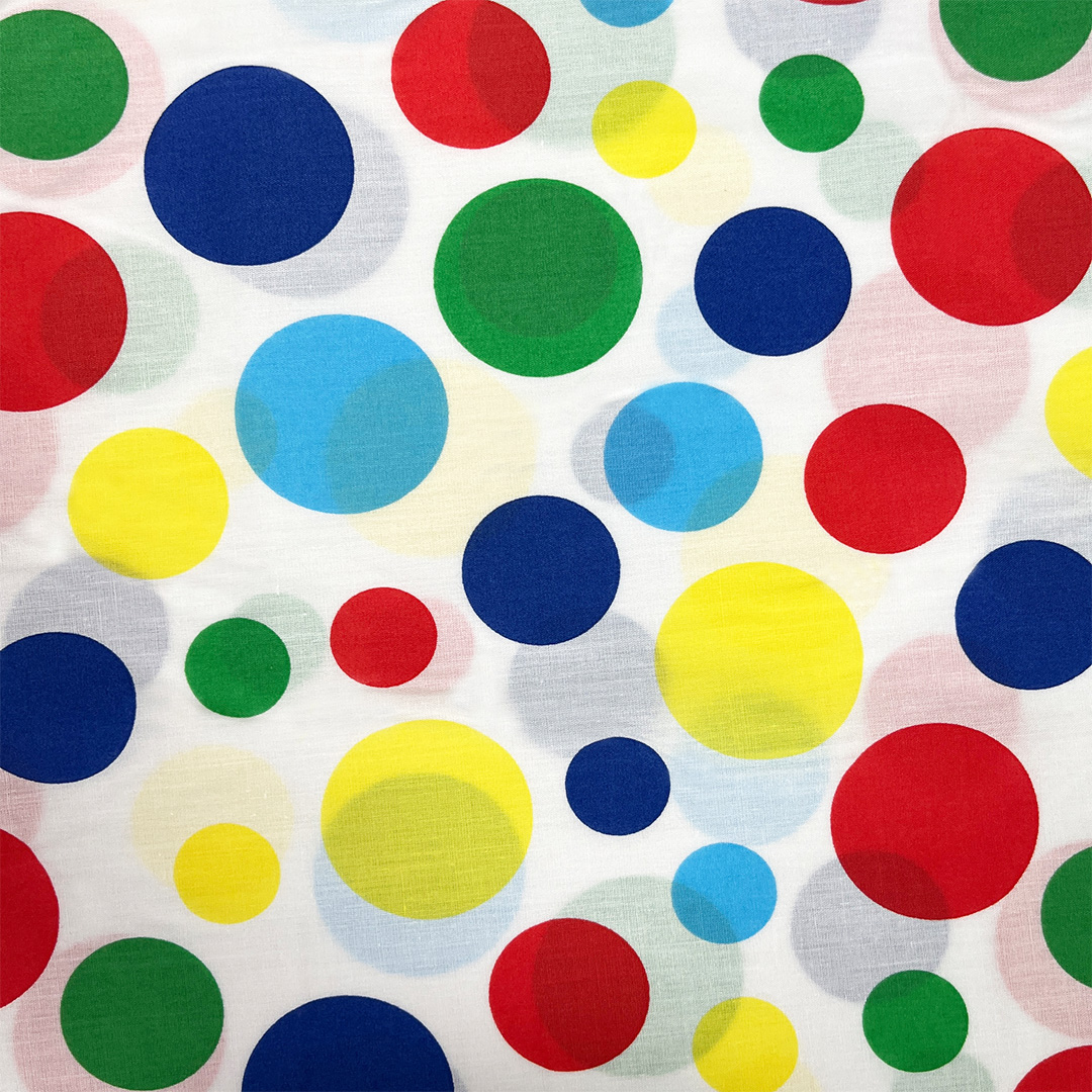 Bright, large, rainbow spot printed polycotton. Perfect for costume making.