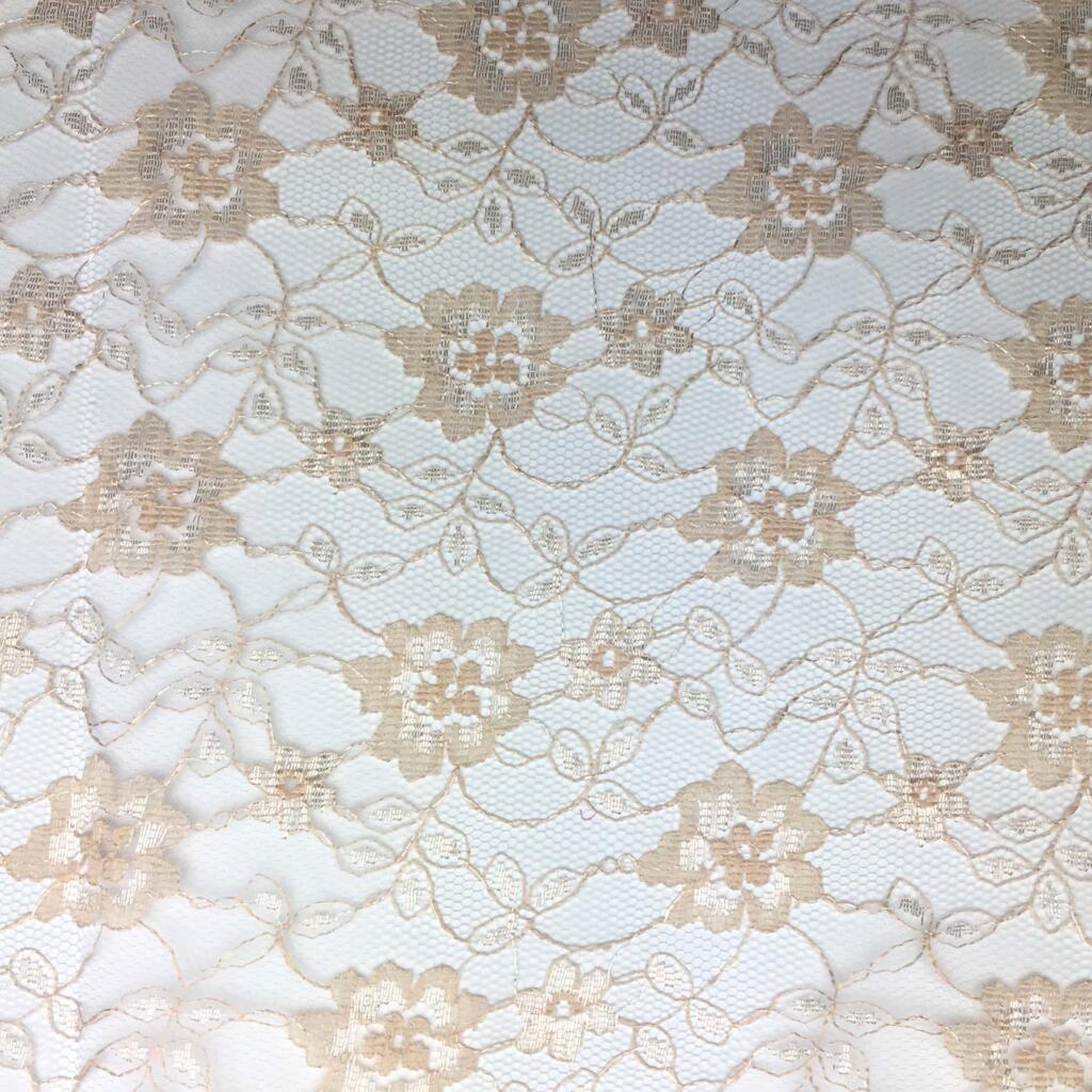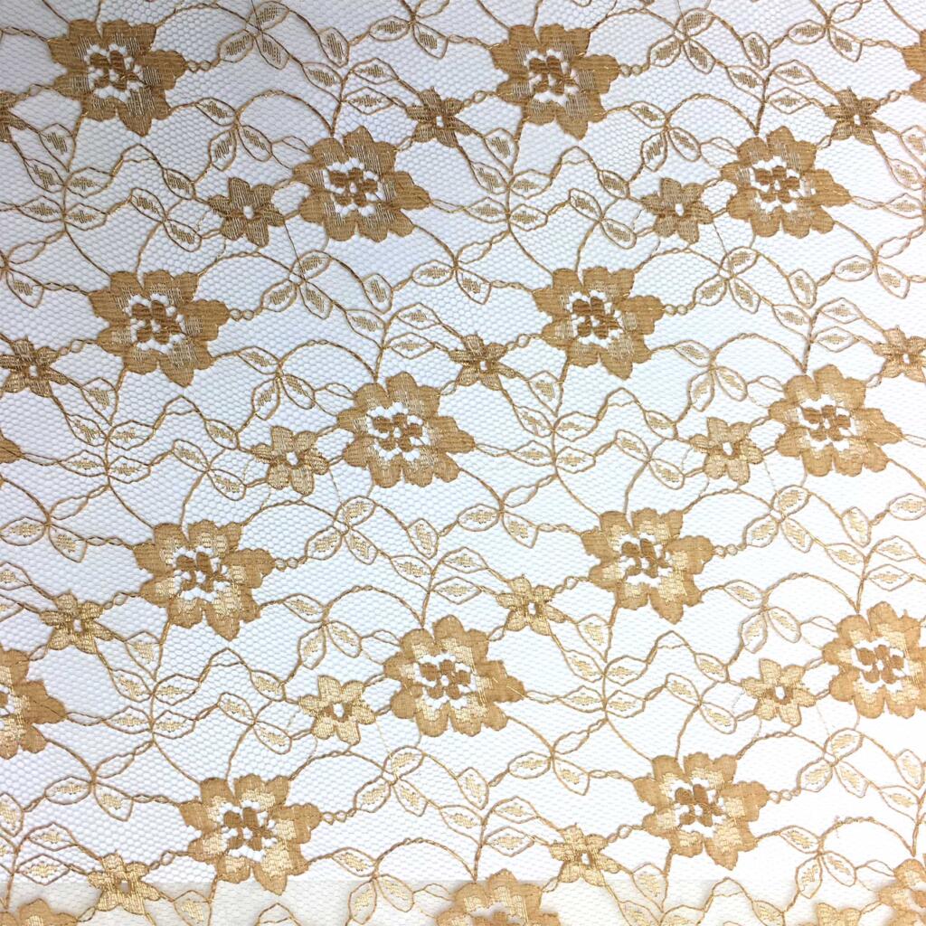 Synthetic embroidered lace. A multipurpose fabric ideal for use as a dress fabric, decoration, displays, fancy dress and crafts.