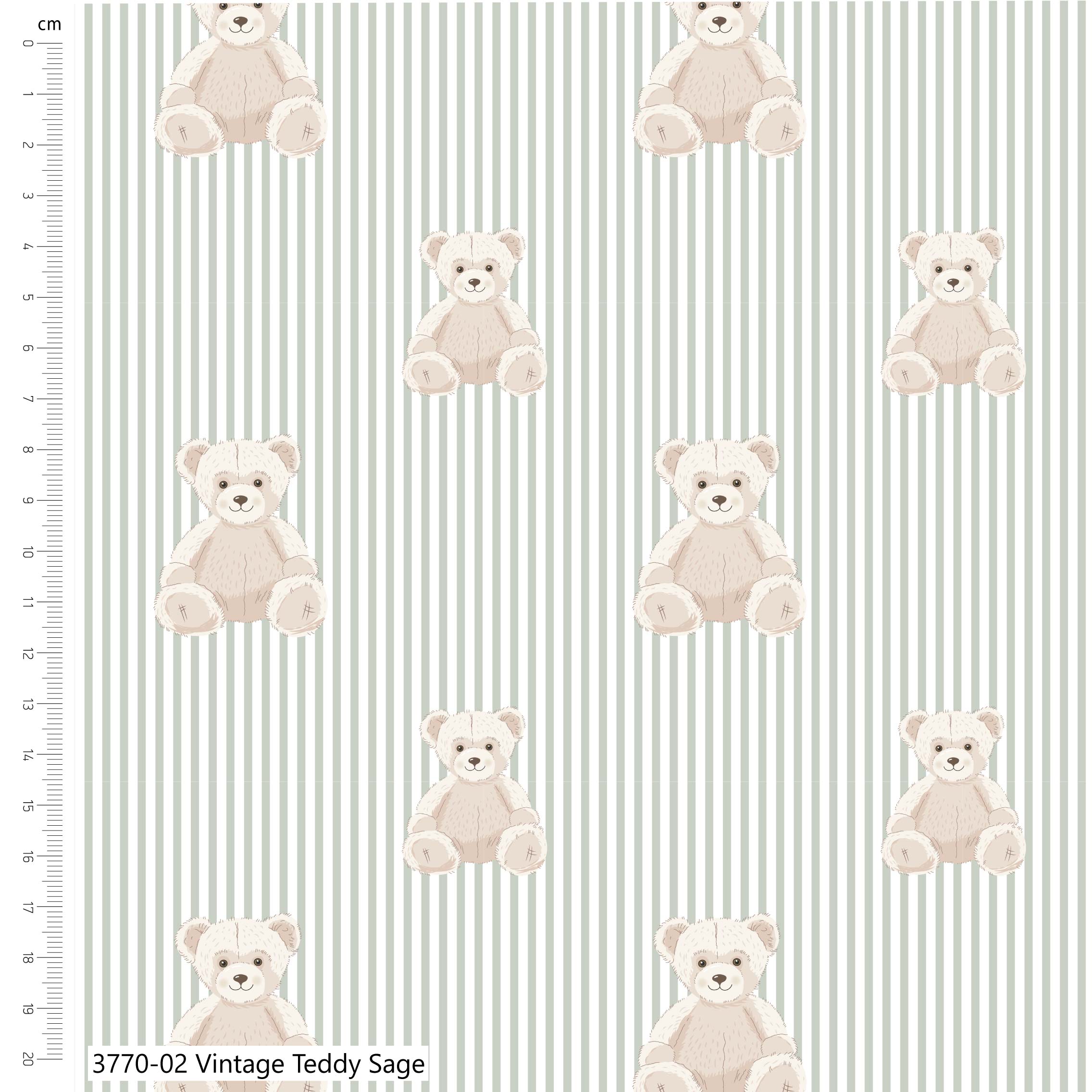 01 Keepsake Bears, 02 Vintage Teddy Sage, 03 Knitted Texture Natural, 04 Sage Buttons, 05 Sage Check, 06 Heirloom Toys, 07 Vintage Teddy Pink, 08 Knitted Texture Pink, 09 Pink Buttons, 10 Pink Check