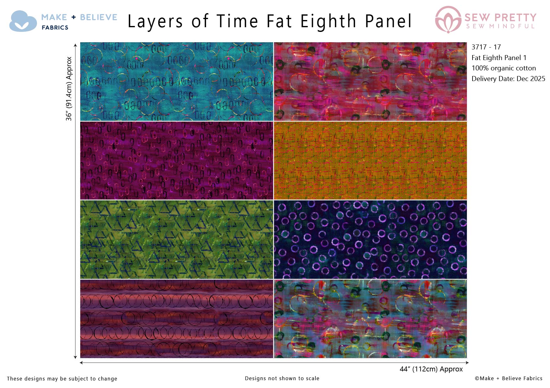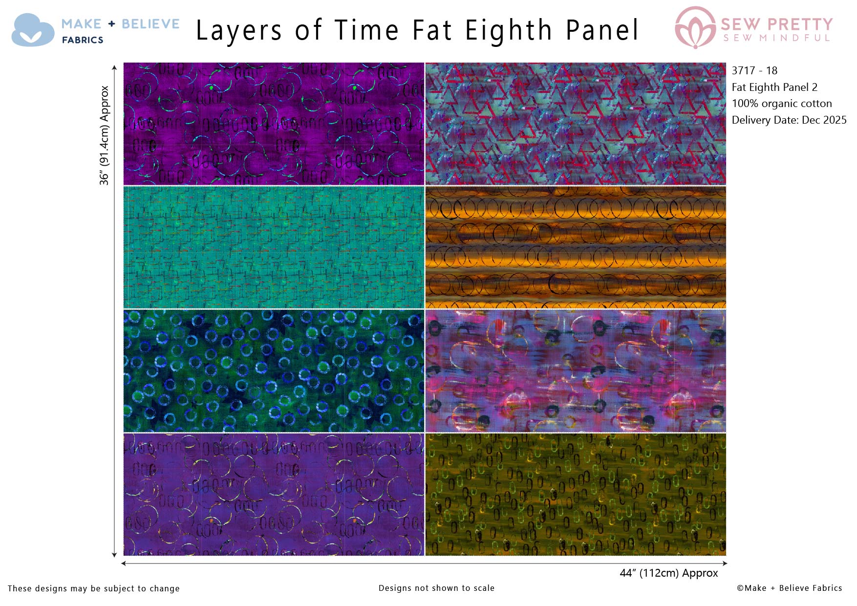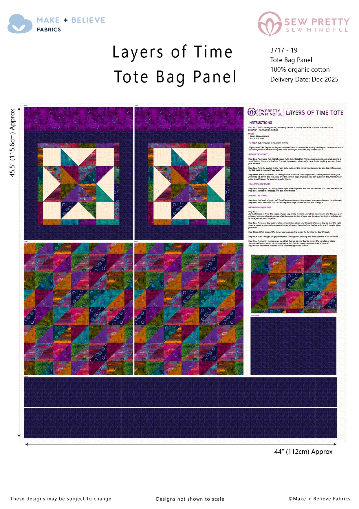 Complimentary fabric panels to the Layers of Time collection, designed by Sew Pretty Sew Mindful. Including two fat eighth panels for smaller craft and quilt projects, and a seperate Tote Bag panel. Printed on 100% organic cotton.