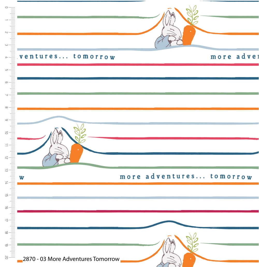 High quality digitally printed cotton fabric featuring Peter Rabbit. Ideal for use in crafting, as a dress fabric, for fancy dress costumes, for table cloths and also for use in displays.