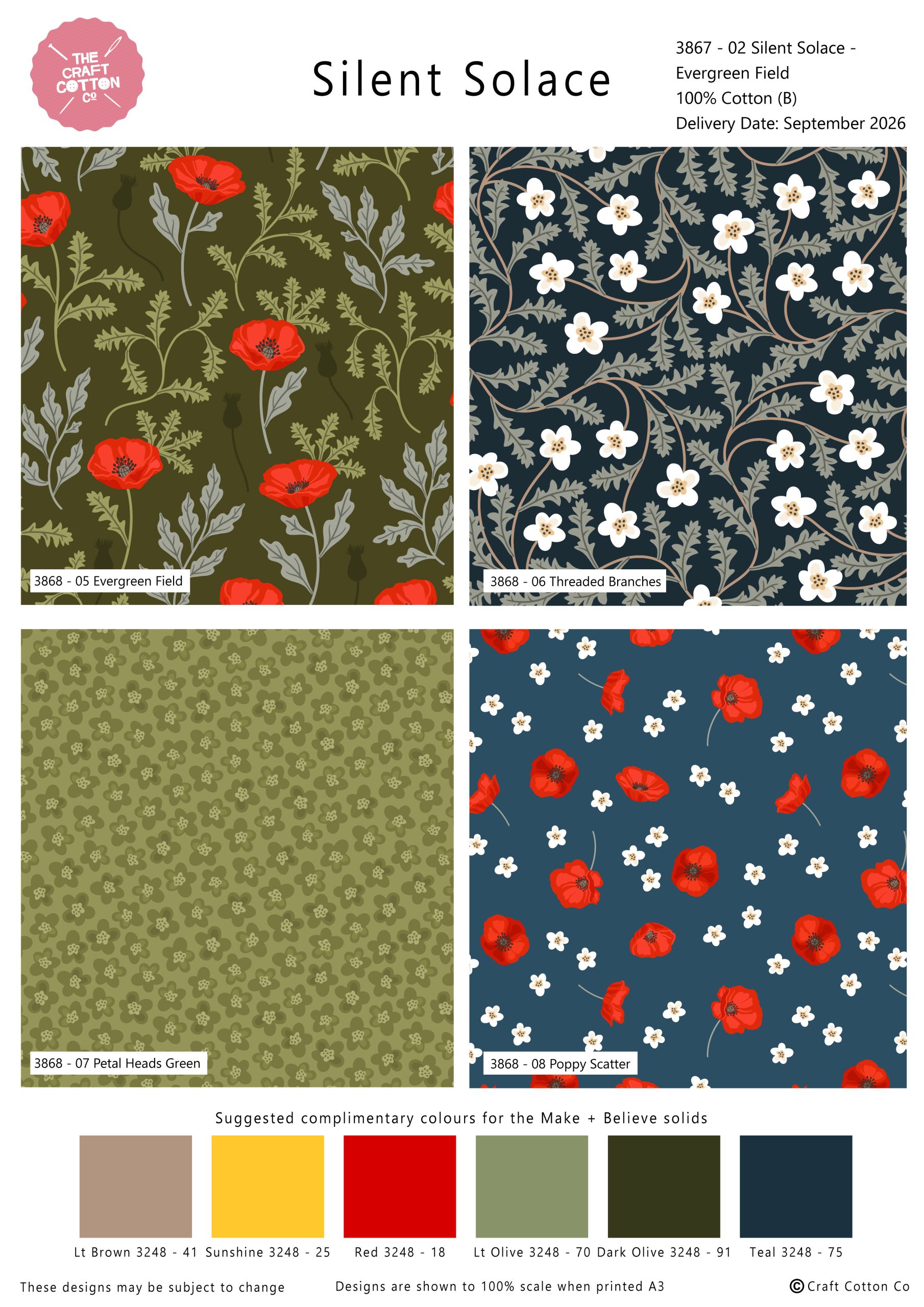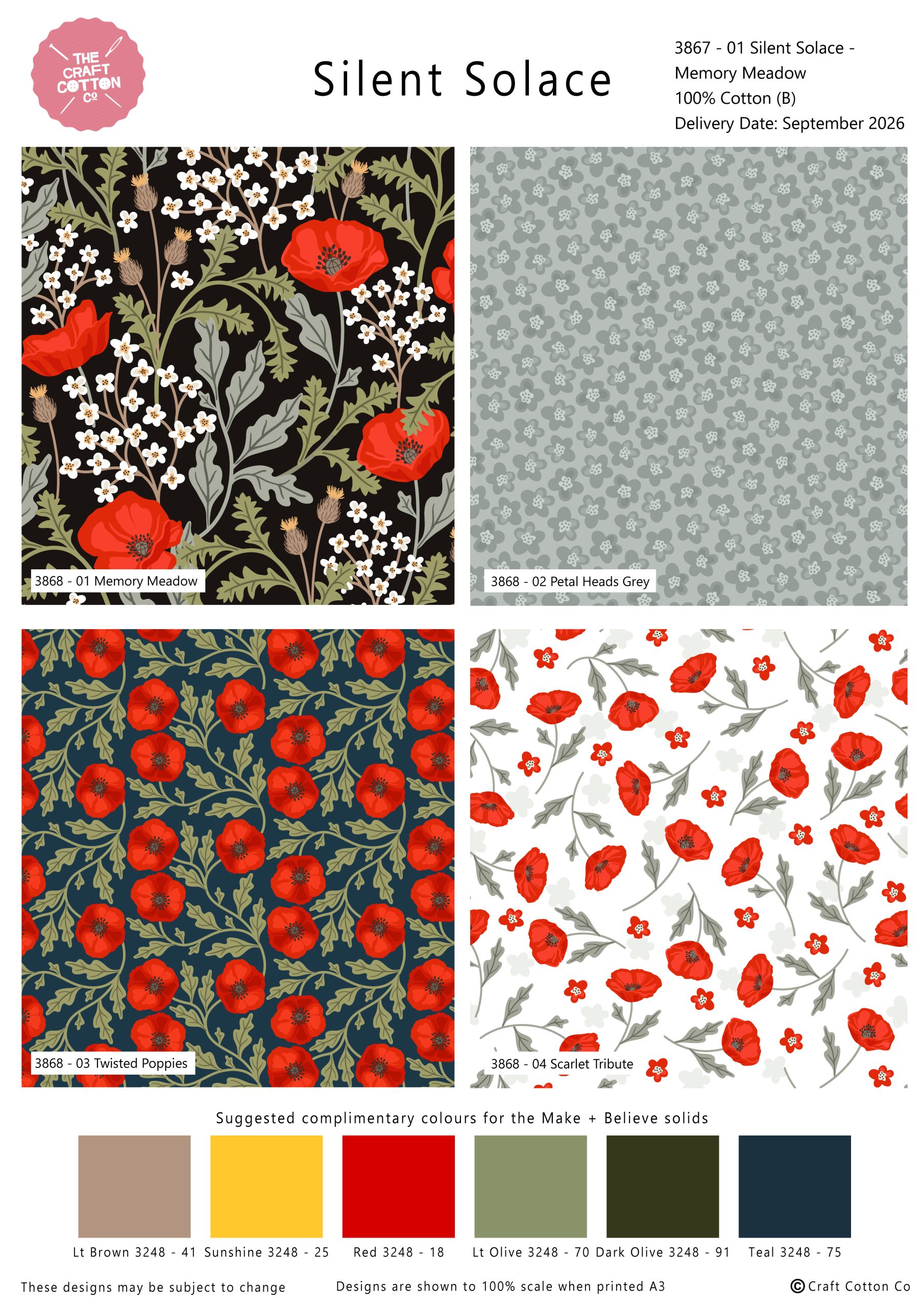 Silent Solace by The Craft Cotton Co is a beautiful poppy fabric collection, in classic reds, greys, navy’s and black. Perfectly paired together designs for quilting and crafting.