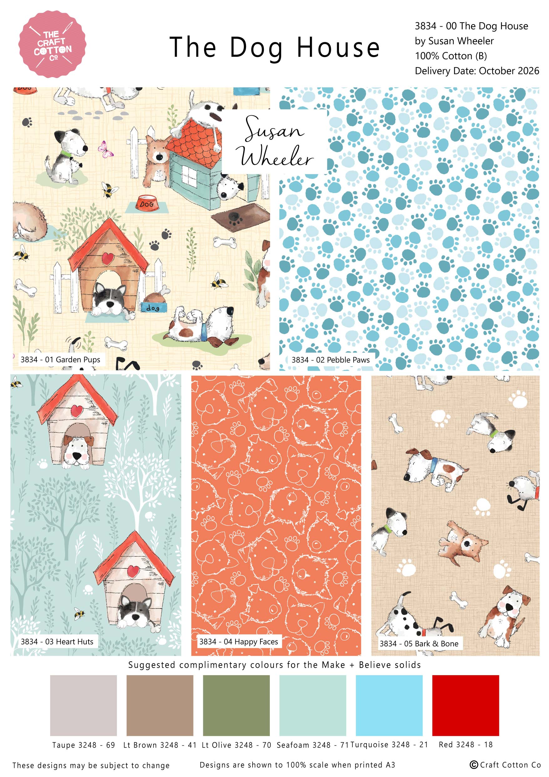 The Dog House by Susan Wheeler is a playful collection of 5 designs, featuring different cute illustrated dogs. Perfect for children’s craft projects, clothing apparel and quilting.