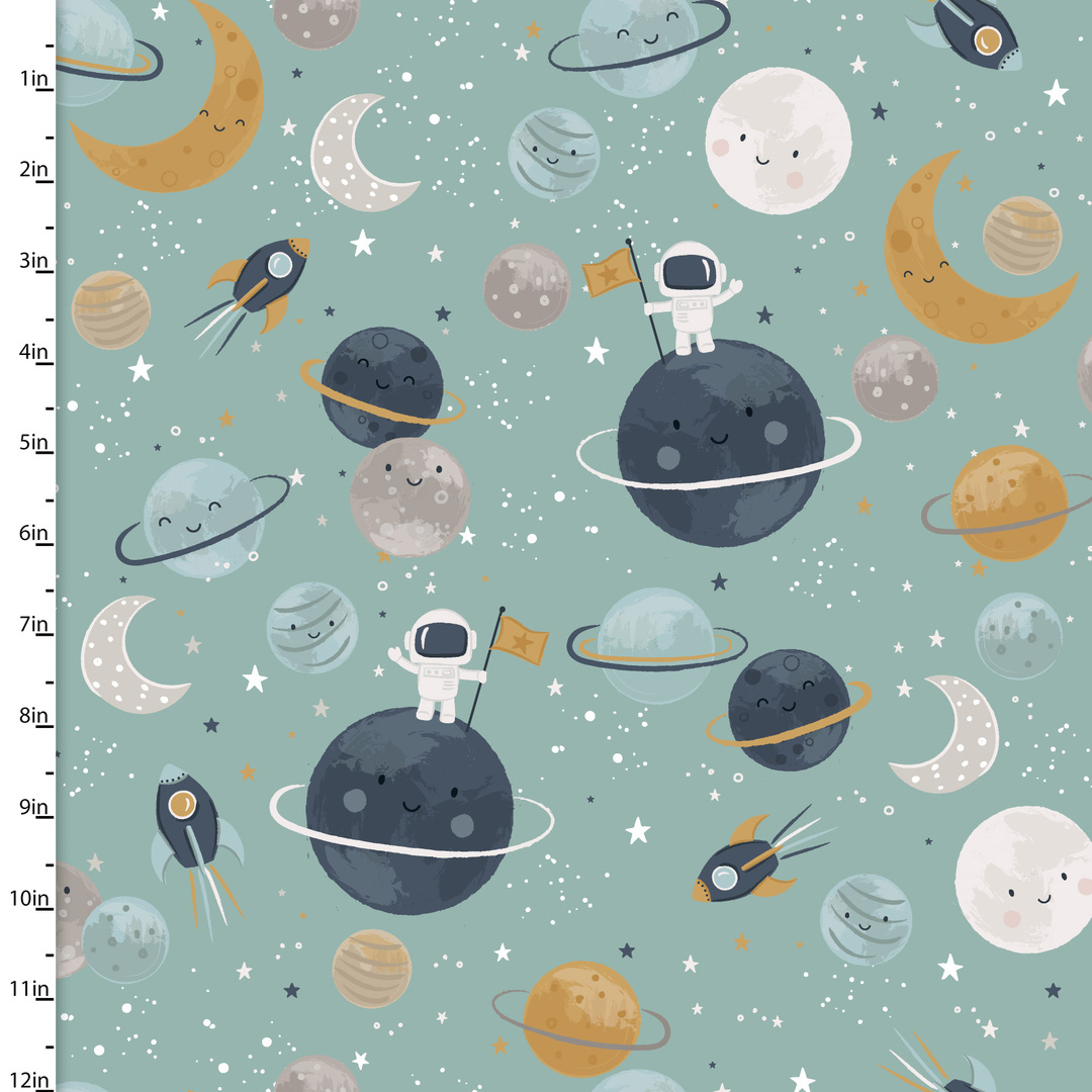 Cute space and planet themed designs, perfect for childrens nursery, crafting and quilting, in a premium cotton flannel.