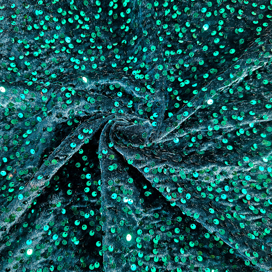 Soft, velour, sequin fabric. Perfect for seasonal dressmaking, eveningwear, dancewear and stagewear.