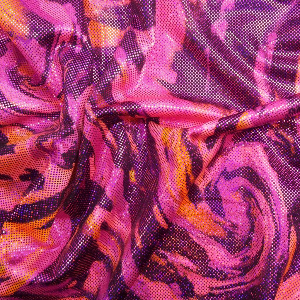 Synthetic stretch fabric with Vortex foil effect. Ideal for dancewear and stagewear.
